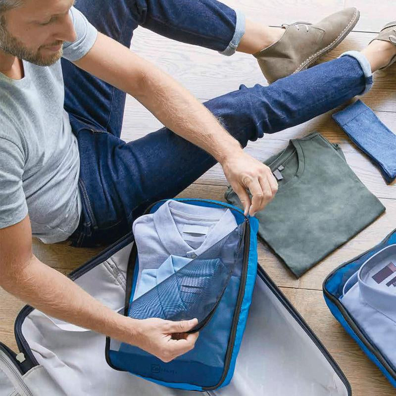 Mantén todo limpio y ordenado con estos prácticos organizadores de maleta, fabricados con tela respirable, vienen también con una ventanita transparente para poder identificar más fácil tu ropa. Son 2 amplios organizadores rectangulares para pantalones y camisas, por ejemplo. ¡Llegará todo sin arrugas a destino e impecable, estos son uno de nuestros MUST para viajar o para salir de paseo en familia!