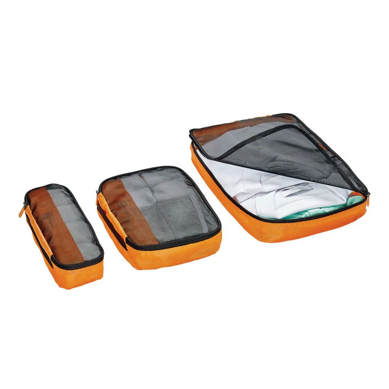 Mantén todo limpio y ordenado con estos prácticos organizadores de maleta, fabricados con tela respirable, vienen también con una ventanita transparente para poder identificar más fácil tu ropa. Son tres organizadores uno rectangular amplio para pantalones y camisas por ejemplo otro mediano para poleras y uno más chico para ropa interior. ¡Llegará todo sin arrugas a destino e impecable, estos son uno de nuestros MUST para viajar o para salir de paseo en familia!