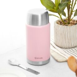 • Termo de Comida Insulado Acero Inox 750 ml Rosado Simplit: Un toque de elegancia en cada bocado. Mantén tus platillos calientes o fríos mientras deslumbras con este termo rosado de acero inoxidable.