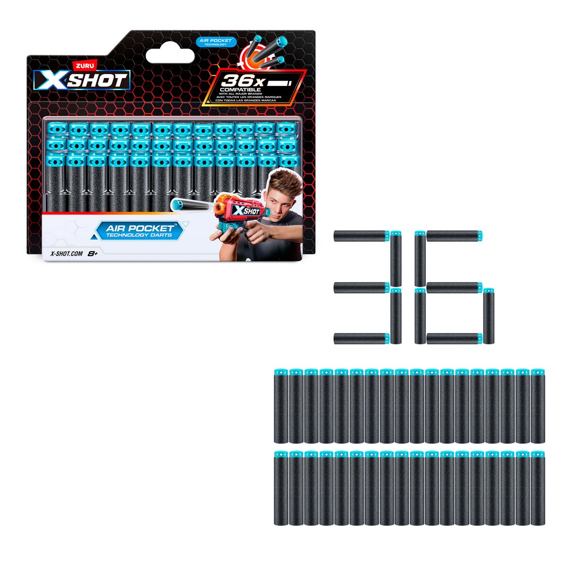 ¿Te imaginas obtener diversión sin límites? ¡Que comience la acción! Este es el juguete que estabas esperando para pasar fabulosas horas de diversión con tus amigos y familiares. Demuestra tu habilidad y puntería alcanzando a todos tus contrincantes. Este fabuloso pack de 36 Dardos de goma espuma, son ideales para que los uses con tu pistola X-Shot. Este juguete le permite a niños desarrollar la imaginación, potencia la puntería, destreza, socialización, la comprensión causa/efecto y la orientación espacial.