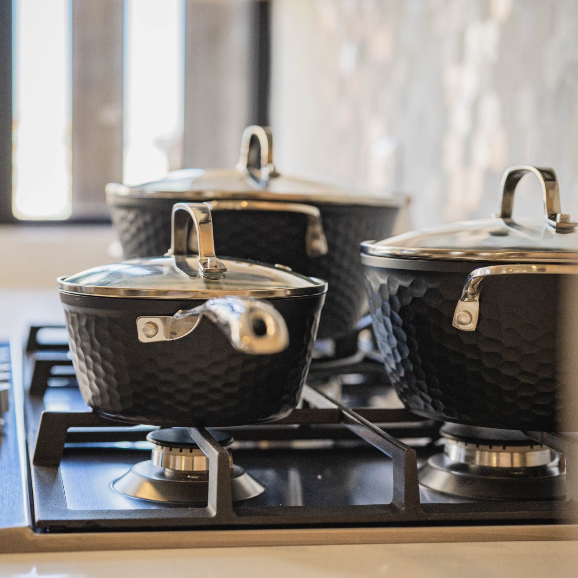 • Incluye: Olla de 24 cm con tapa, Olla de 20 cm con tapa, Olla de 16 cm con tapa,