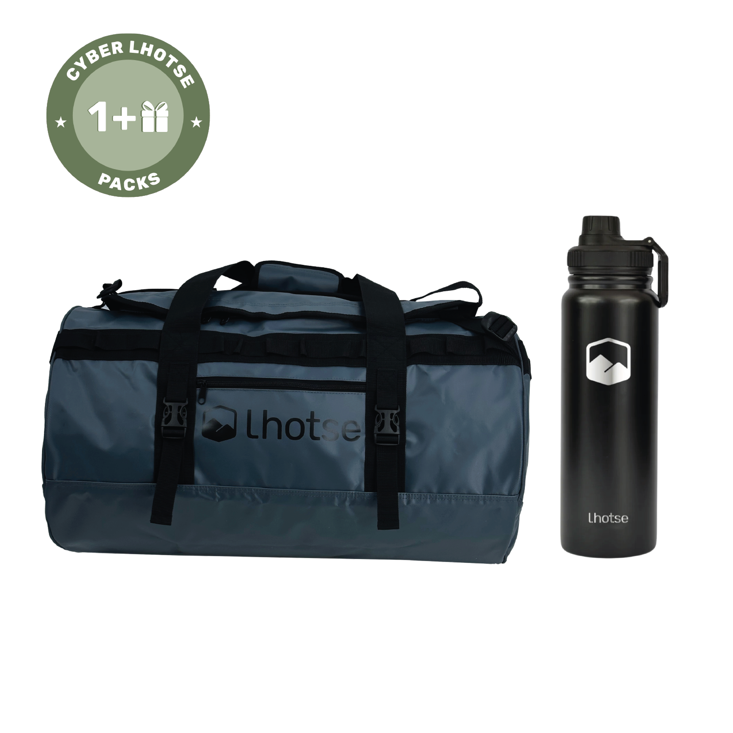 ¡Explora nuevos horizontes con nuestro exclusivo Pack Bolso Impermeable 60LT Navy + Botella Coihue Lhotse!