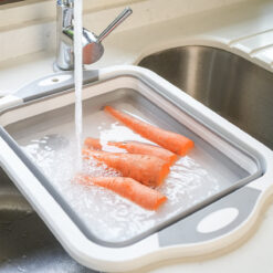 Simplifica tu rutina culinaria con nuestra tabla, colador y contenedor todo en uno. Corta tus verduras, despliega la tabla, lava tus ingredientes y, al abrir el drenaje, el agua del lavado se elimina fácilmente.