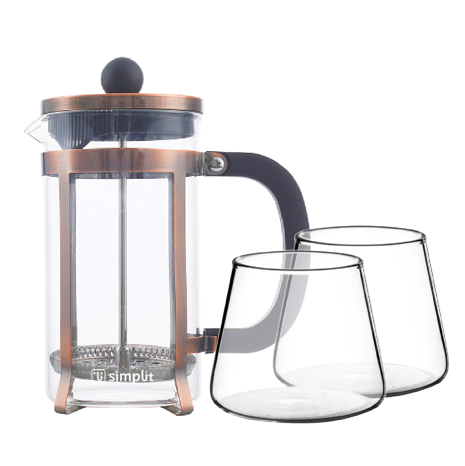 ¡Eleva tus momentos de café a un nivel de elegancia insuperable con el Pack Cafetera Prensa Francesa y Set de Vasos de Vidrio 320 ml Simplit!