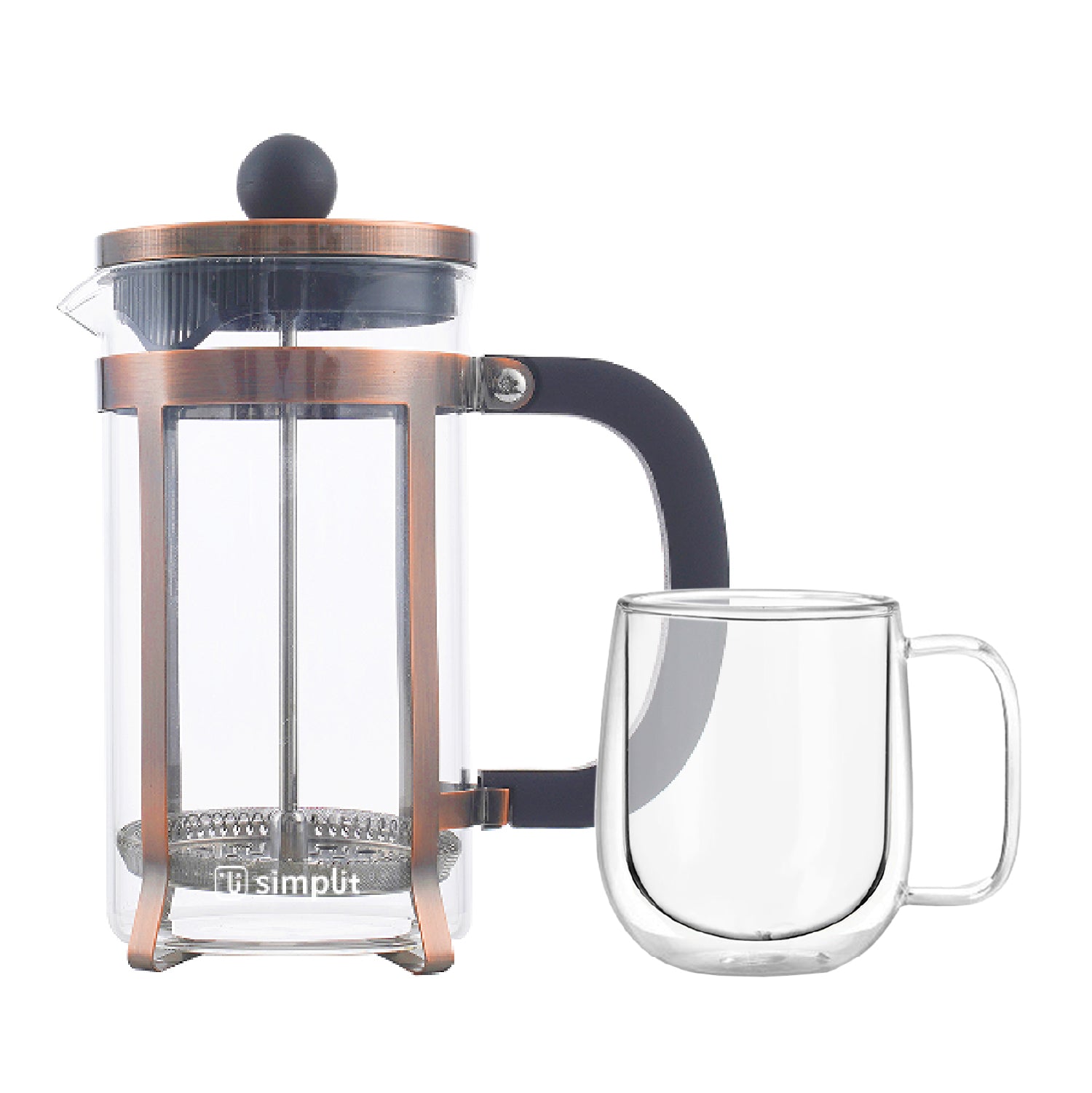¡Eleva tus momentos de café a un nivel de elegancia insuperable con el Pack Cafetera Prensa Francesa y Taza Mug 300 ml Simplit!