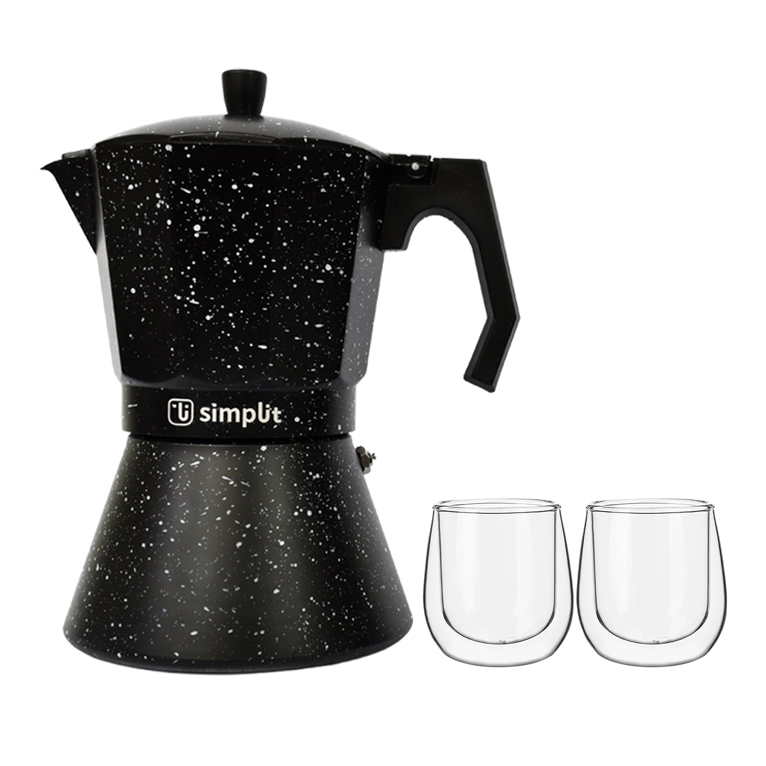 Nuestra Cafetera Italiana Simplit es perfecta para los amantes del café. En ella podrás lograr un café más intenso que lo que te entregan otras cafeteras. Su diseño negro de granito le dará el toque perfecto que le faltaba a tu cocina.