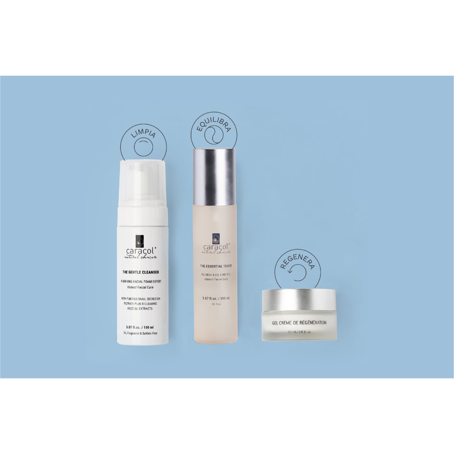 3.crema gel de regeneración, en ese orden de rutina skincare. Regenera, hidrata, equilibra la grasitud, combate granos y espinillas, cierra los poros y logra un peeling suave regenerando la piel. Recomendada para pieles grasas y mixtas. Este pack libre de aceites ofrece; Limpieza con nuestro mousse suave que limpia sin intervenir nuestra barrera de piel natural. Tonificar + hidratar con nuestro tónico calmante, neutralizar el ph y preparar para una mejor absorción del resto de los pasos. Y para sellar la hidratación nuestra crema gel de regeneración que humecta y promueve la regeneración celular.
