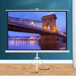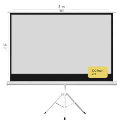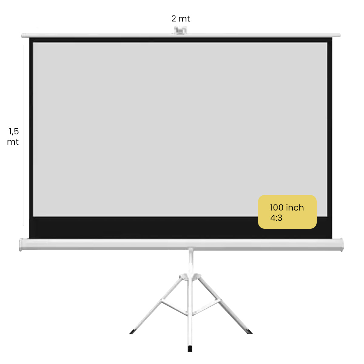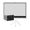 • Pantalla enrollable con trípode desplegable y ajustable en altura