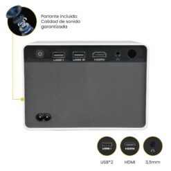 El Proyector HALO te permite disfrutar de una proyección de hasta 170 pulgadas con una resolución de 1280×720 píxeles y un brillo de 150 ANSI lúmenes, lo que garantiza una imagen clara y detallada. Equipado con un parlante integrado de 3W y conectividad Bluetooth, el HALO ofrece una experiencia de audio y video inmersiva. Su diseño compacto y las múltiples opciones de conectividad, que incluyen dos puertos USB y una entrada HDMI, lo convierten en la opción perfecta para proyectar desde cualquier dispositivo en cualquier lugar.