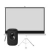 • Pantalla enrollable con trípode retráctil para una instalación rápida y fácil.