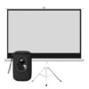 • Trípode retráctil y pantalla enrollable, fácil de instalar y transportar.