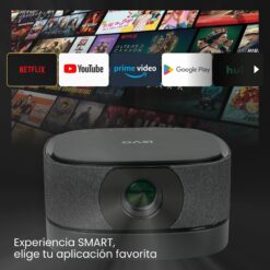 El Proyector Smart LUMIX es la solución perfecta para quienes buscan entretenimiento sin límites. Con un diseño completamente inalámbrico y una batería integrada, este proyector te permite disfrutar de una proyección de hasta 200 pulgadas sin necesidad de cables. Con una resolución de 1280×720 píxeles, un brillo de 150 ANSI lúmenes y tecnología Auto Foco 4D Keystone, el Smart LUMIX garantiza una experiencia visual impecable. Además, cuenta con aplicaciones integradas como Netflix, Prime Video y YouTube, lo que te permite acceder a tus contenidos favoritos al instante. Su parlante 360 integrado y la conectividad Bluetooth aseguran un sonido envolvente y una conexión fácil con otros dispositivos.