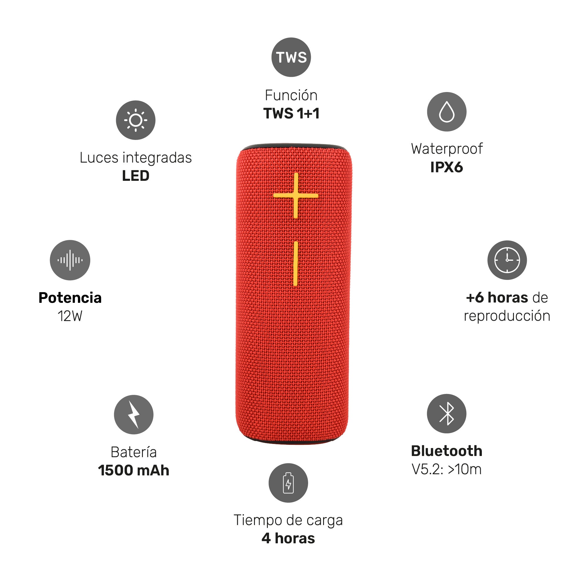 Parlante Portátil Inalámbrico Bluetooth Pulse On Red