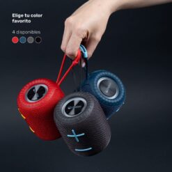 Disfruta de un sonido claro con 6W RMS de potencia, luces RGB integradas y una batería recargable de 1200mAh que ofrece + de 6 horas de reproducción. Su conectividad Bluetooth 5.2 garantiza estabilidad y compatibilidad con todos tus dispositivos.