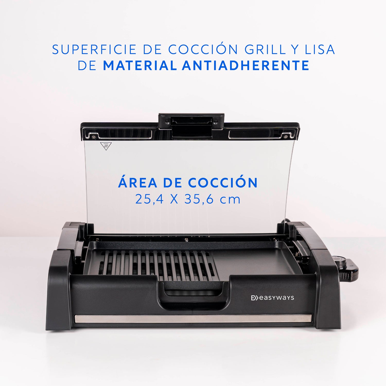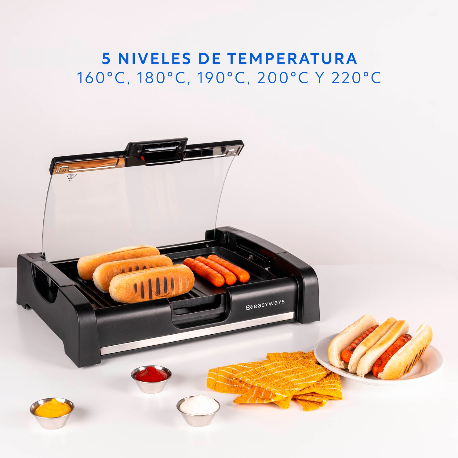 Con la Parrilla Pitmaster de EasyWays, no tienes que preocuparte por el humo ni por el exceso de calor que generan las parrillas tradicionales. Su sistema eléctrico de última generación te permitirá controlar la temperatura en 5 niveles (160, 180, 190, 200 y 220°C), logrando una cocción uniforme en todo momento. Además, su superficie antiadherente te permitirá cocinar de forma saludable, ya que no tendrás que agregar aceites ni grasas adicionales.