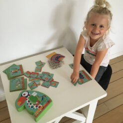 ¡Crea los pijamas más lindos y locos para la alegre pandilla de amigos animales! Entretenido juego donde sacas una tarjeta de desafío, la pones el tablero y con las tarjetas de animales, patrones y colores tienes que lograr vestir al animal igual que la tarjeta, trae 4 niveles de dificultad, y 40 desafíos para entretenerse solo y combinar y organizar las tarjetas.