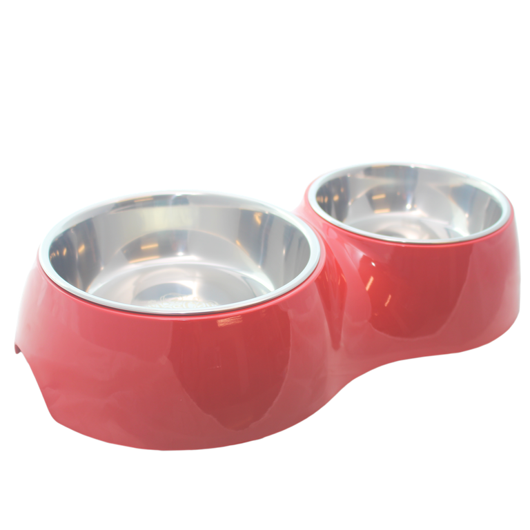 Es de melamina con plato de acero inoxidable y tiene un material antideslizante en la base. Durable, fácil de lavar e higiénico y viene en distintos y lindos colores: Rojo, fucsia y azul marino.