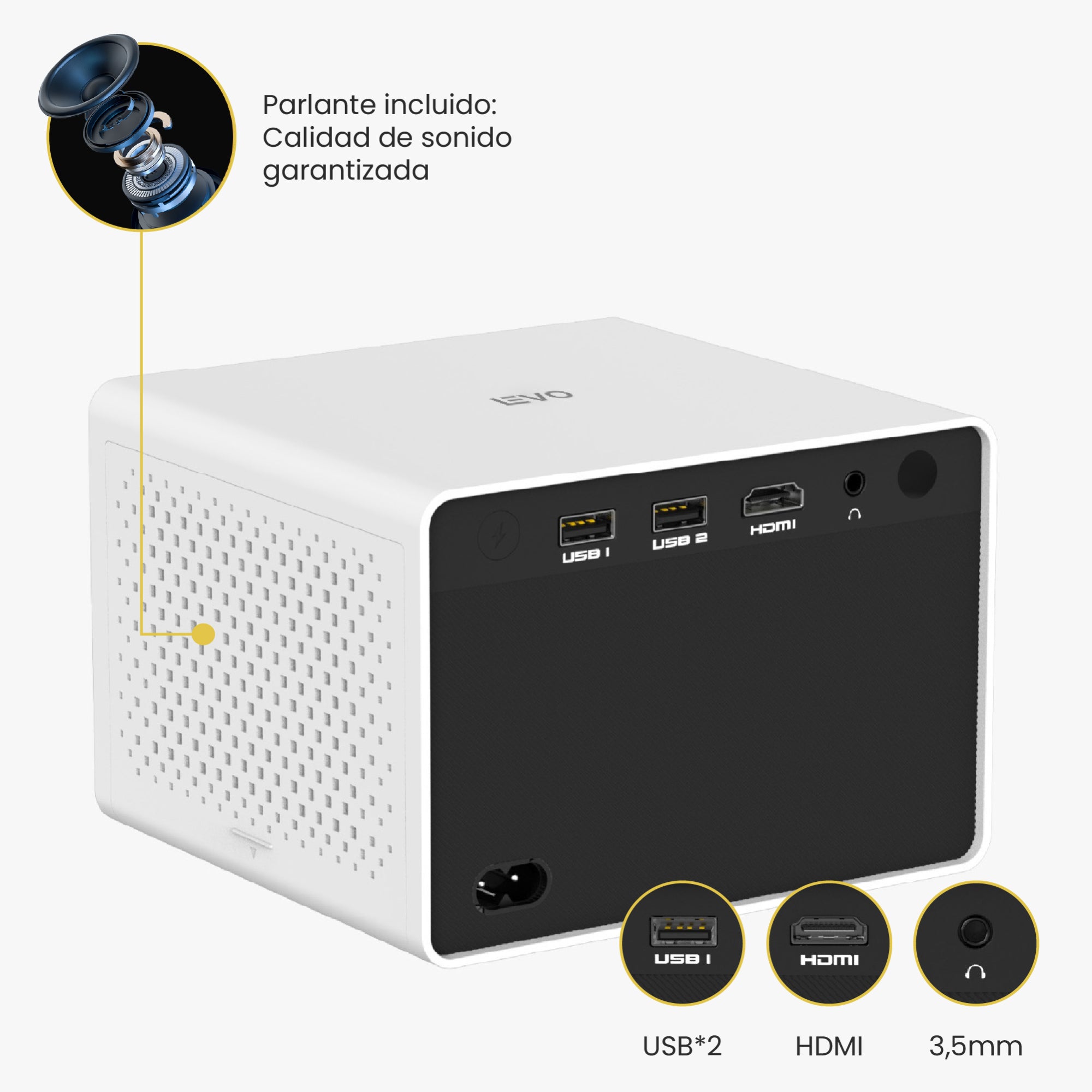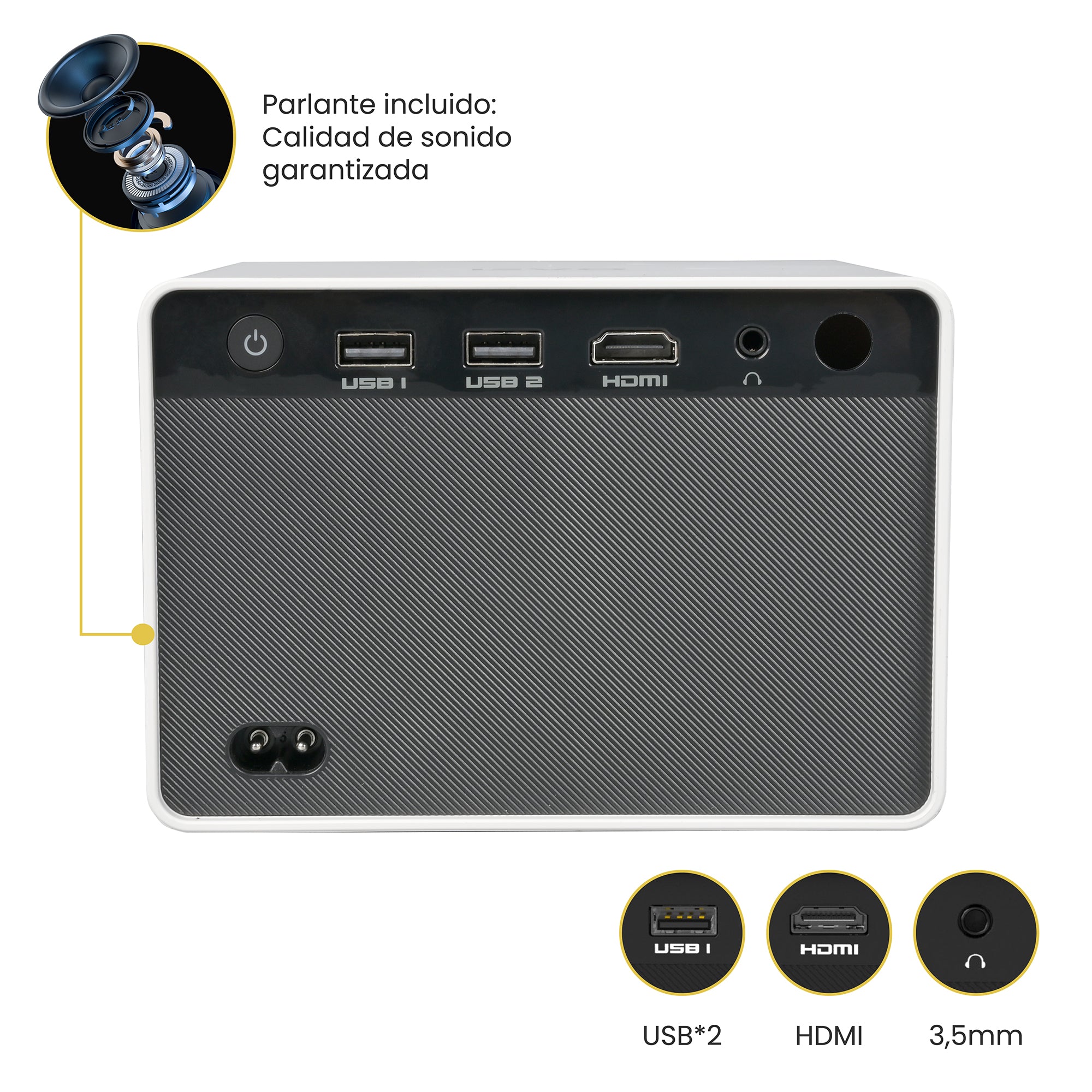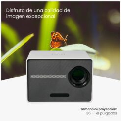 ¡Lleva el cine a donde vayas! El Proyector Portátil Halo es tu compañero ideal para disfrutar de tus películas, series y presentaciones con una calidad de imagen impresionante. Con un diseño portátil y fácil de instalar, incluye un parlante integrado. Sus 2 entradas USB y 1 HDMI permiten múltiples opciones de conectividad. Disfruta de una proyección de hasta 170 pulgadas con un brillo de 150 ANSI lumens. ¡Convierte cualquier lugar en tu sala de cine personal!