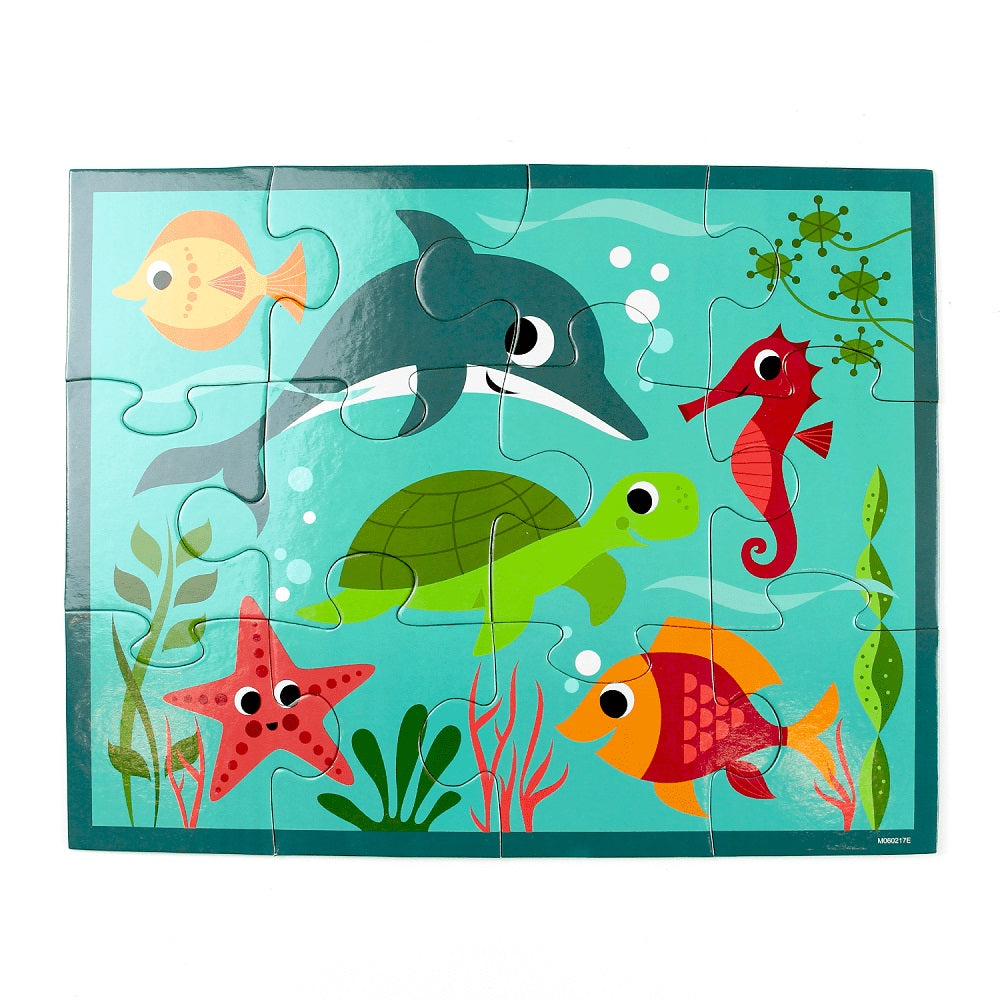 Descubre animales marinos en este rompecabezas de 12 piezas extra gruesas perfectas para manos pequeñas. ¡Viene en un estuche con cierre ideal para viajes y mantener el orden! Tamaño Puzzle armado: 36 x 28cm. Tamaño Estuche: 27 x 18.5cm Las Piezas del Puzzle contienen 90% de papel reciclado. Impreso con tintas no toxicas Puzzle de 12 pcs.
