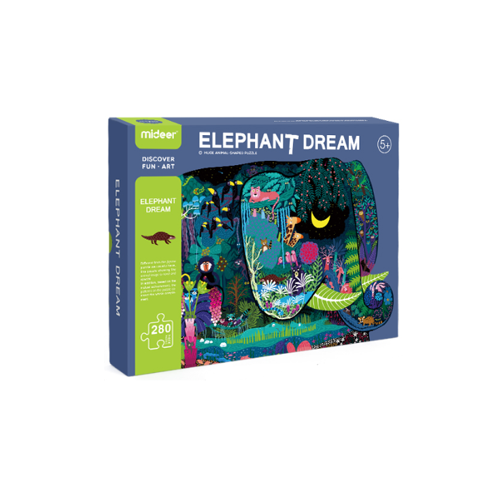 El puzzle con forma de elefante de 280pcs tiene un diseño muy especial del misterio de la jungla conformado por animales, pájaros, árboles y muchas formas de vida, es un puzzle lleno de detalles. Es un puzzle no solo para que los niños se diviertan armándolo, sino que también sirve para reconocer animales (más de 30 especies), plantas (más de 30 especies) y el medio ambiente.