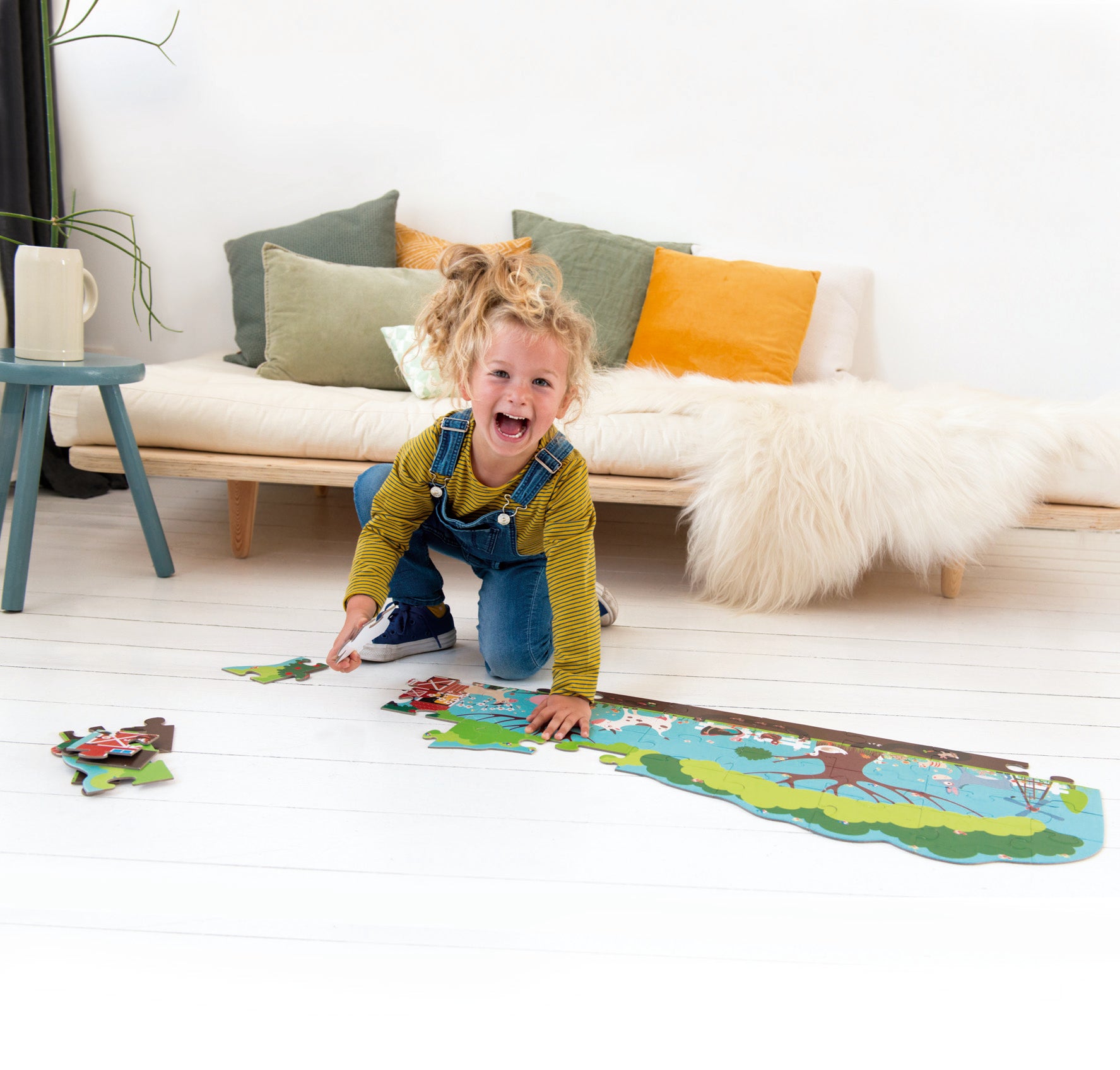 Puzzle de piso 36 piezas ideal para la motricidad fina y concentración Tamaño Armado 100 x 33 cm. Hecho en cartón altamente resistente.