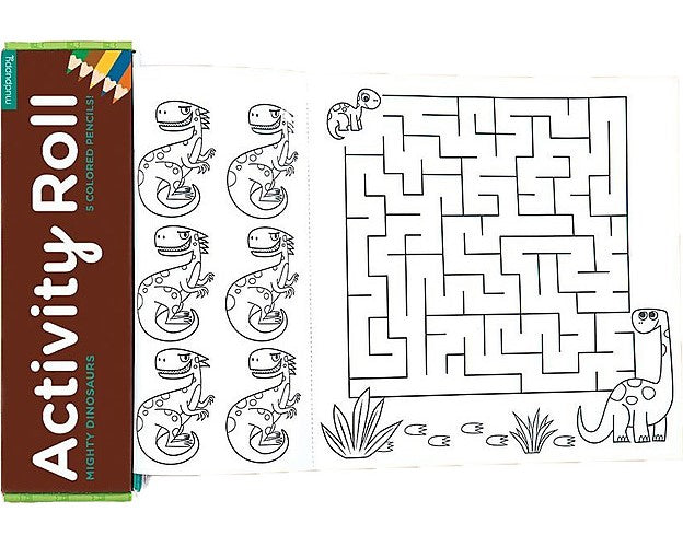¡Disfruta de 1,8mts de diversión con el rollo de actividades Dinosaurios! Incluye diferentes juegos como: laberintos, detectar la diferencia y más. Trae perforaciones después de cada actividad. Incluye 5 lápices de colores. Tamaño caja: 21 x 6 x 6 cm. Tamaño del rollo: 1.8m x 18.5cm. El embalaje contiene un 80% de papel reciclado. Impreso con tintas no tóxicas.