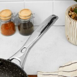 Diseñada con un sistema de proporción para una distribución uniforme del calor, con un revestimiento antiadherente sin plomo ni cadmio para una cocina más saludable.