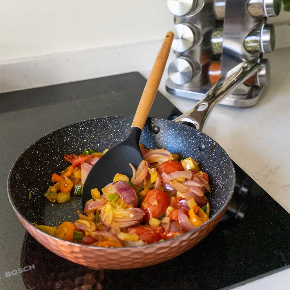 Copper Collection está cuidadosamente diseñada para entregarte un producto duradero, con un hermoso acabado martillado que agrega un toque de calidez y elegancia a la cocina.