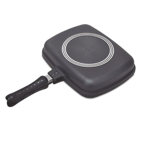 Sartén gril doble, es un sartén gastronómico con 2 capas antiadherentes de teflón Dupont. Este Sartén hará que tengas una mejor cocción en un menor tiempo gracias a su optimización del calor. No deja escapar jugos gracias a su borde de goma hermética.