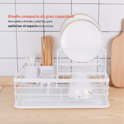 Cuenta con una bandeja inferior de drenaje y un contenedor doble para separar tus cubiertos.