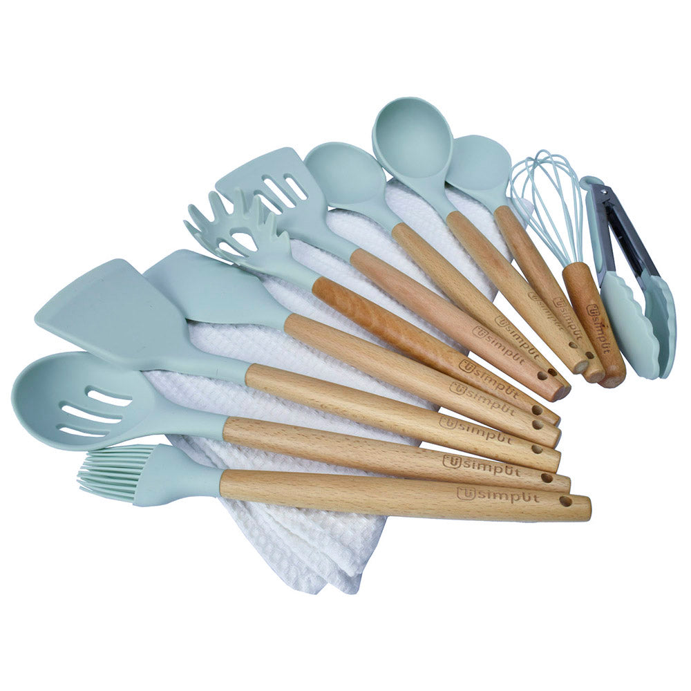 Nuestro Set de Utensilios de Cocina Simplit incluye 12 piezas básicas para equipar de la mejor manera tu cocina y darle vida y onda a tu espacio favorito. Este set viene con un cómodo contenedor para que los guardes. Todos los utensilios cuentan con un mango de madera y silicona fácil de limpiar que no absorbe olores ni sabores de los alimentos. Resisten temperaturas hasta los 230ºC.