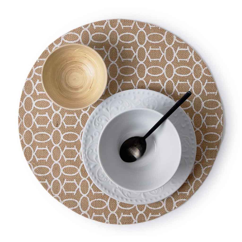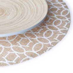 El Set de 2 Individuales de Mesa Summer combina la textura natural del yute con una paleta de colores cálidos y refrescantes. El resultado es una estética relajada y alegre que evoca la sensación de una brisa veraniega. Su combinación de tonos marrones y blancos crea un equilibrio armonioso y un aspecto naturalmente encantador.