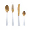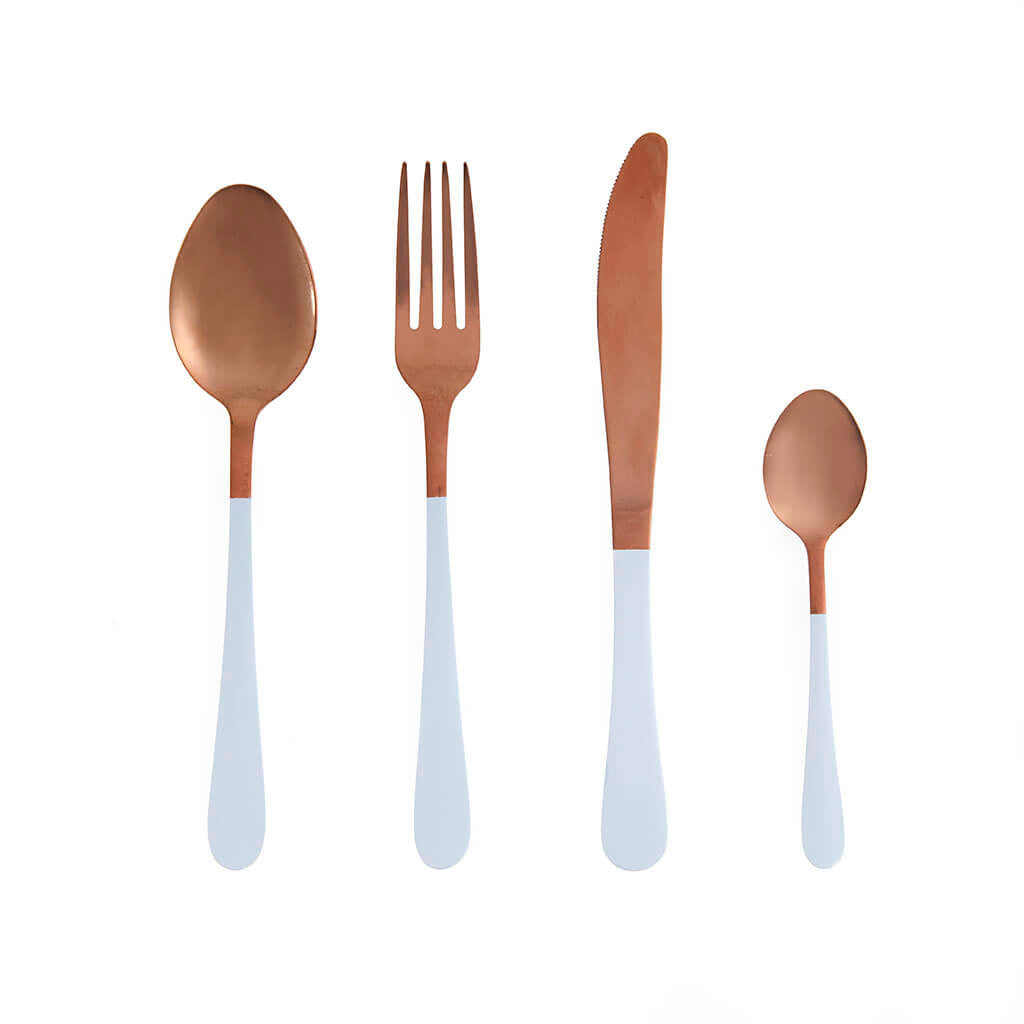 Juego Cubiertos 4 en Acero Inoxidable Color Cobre y Blanco – Pack Set de Cubertería Cuchara Tenedor Cuchillo – Estilo de Líneas Rectas – Vintage Moderno Retro Must.