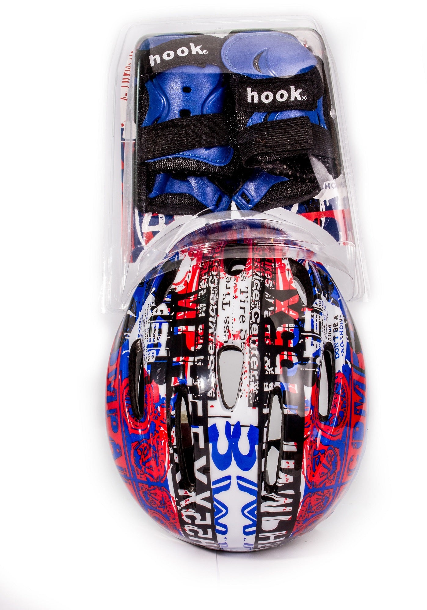 Las nuevas protecciones integral para niños HOOK incluye un casco, dos rodilleras, dos coderas y dos muñequeras. El casco y las protecciones asegurarán que sus hijos estén en una protección de completa mientras hacen deportes al aire libre. especialmente para patinaje sobre ruedas, patinetas, ciclismo, BMX etc.