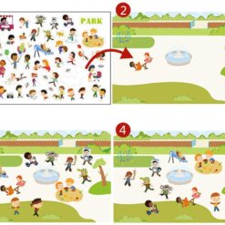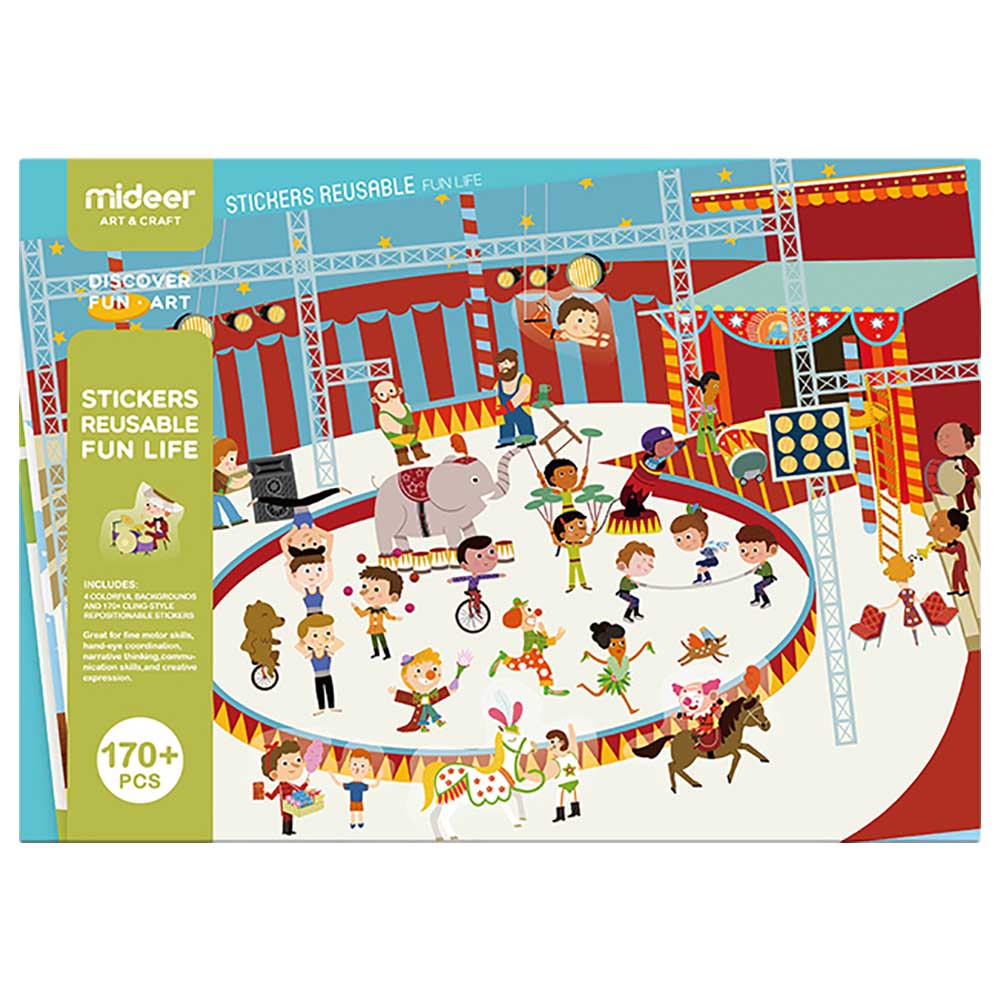 Set de stickers reutilizables, impermeables trae 4 diferentes escenas para jugar, pegar y despegar cuantas veces quieras, con fondo transparente para que se adapten a cualquier escena, 170pcs.