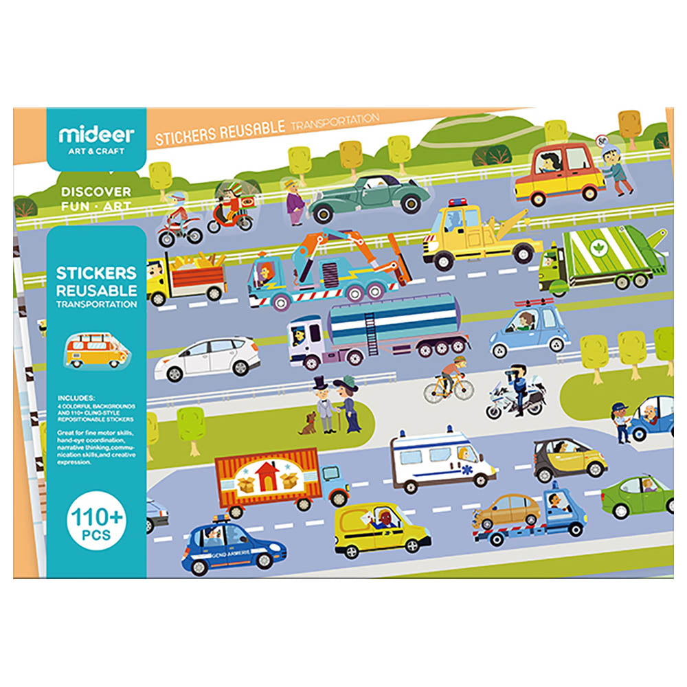 Set de stickers reutilizables, impermeables trae 4 diferentes escenas para jugar, pegar y despegar cuantas veces quieras, con fondo transparente para que se adapten a cualquier escena, 110pcs.