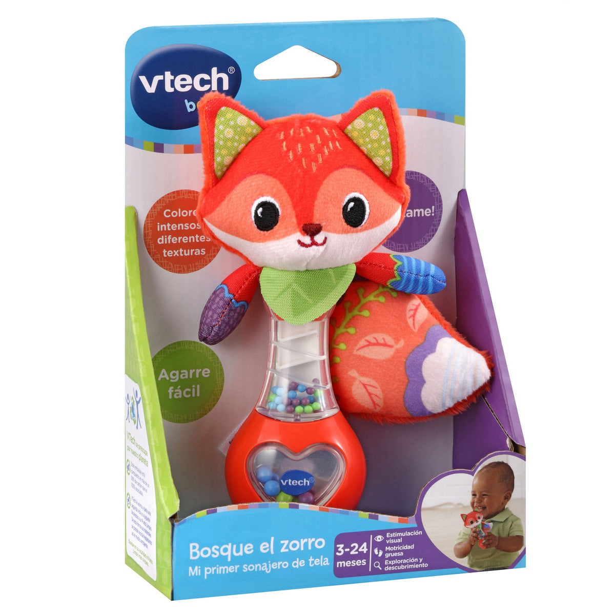 Bosque el zorro de VTech, es un adorable personaje con forma de sonajero que mantendrá entretenido a tu pequeño. Con sus agradables texturas y alegres sonidos, este juguete es perfecto para estimular los sentidos y el desarrollo de tu bebé en sus primeros años. Este sonajero tiene un diseño llamativo con colores intensos y diferentes texturas. Esto ayuda a captar la atención del bebé y estimular su desarrollo visual, además, el juguete está fabricado con materiales de alta calidad y sin bordes afilados, lo que lo hace seguro para su uso por bebés de 3 meses. Bosque el zorro de VTech es un juguete perfecto ya que es divertido, educativo y seguro, tu bebé disfrutará de horas de juego y aprendizaje.