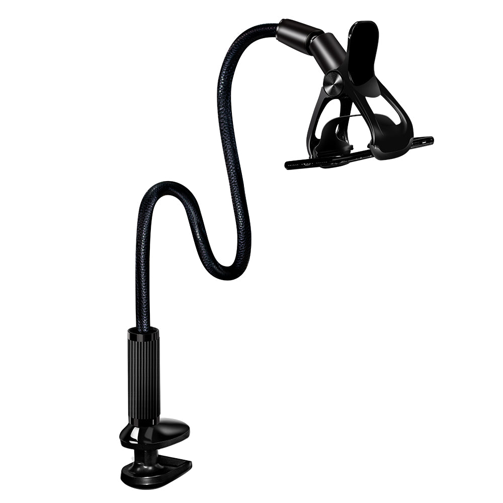 La estructura del soporte es fabricada a partir de una aleación de aluminio, mientras que los componentes de sujeción han sido realizados con ABS, un plástico de alta resistencia al impacto. Capaz de soportar el peso de dispositivos de entre 4” a 10.6”, dimensiones estándar entre los Smartphones actuales. Clip ajustable con la capacidad de rotar 360° para sumir cualquier posición deseada por el usuario. Flexible y fácil de ajustar y configurar en diferentes alturas, sin necesidad de emplear ninguna herramienta adicional. Además de lo anterior, su base antideslizante de silicón consigue una mayor estabilidad para aferrarse a la superficie donde se decida instalar el soporte.
