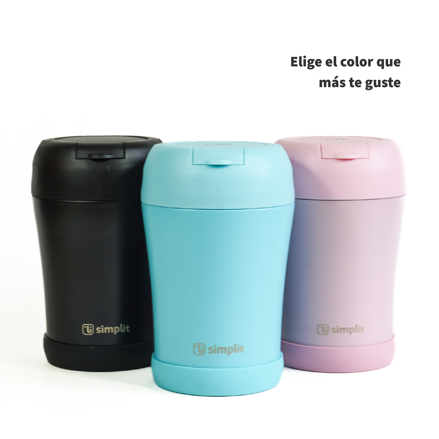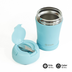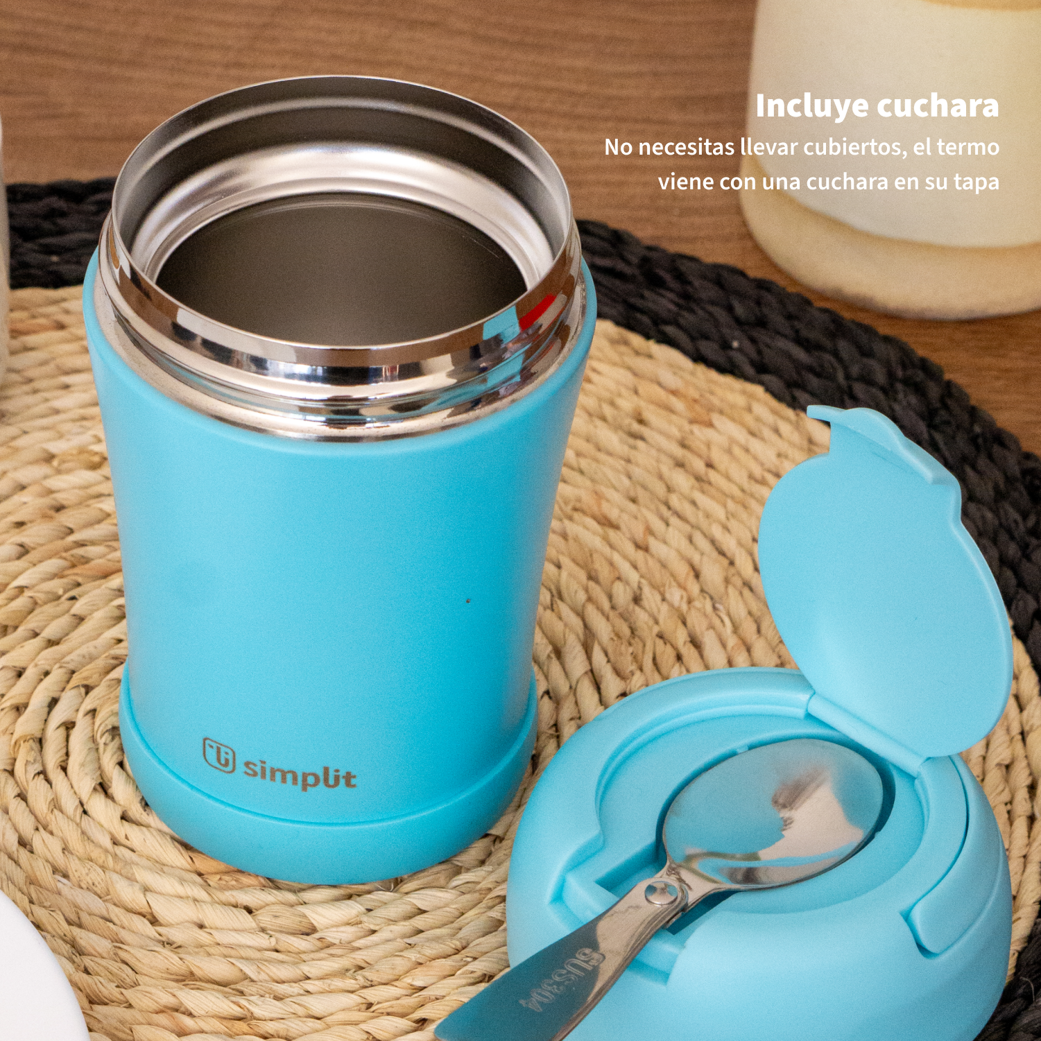 El nuevo termo de comida de 400 ml de Simplit es perfecto para mantener tus comidas frescas o calientes mientras estás en movimiento. Está hecho de acero inoxidable de doble pared y cuenta con un cierre hermético que garantiza la seguridad y la frescura de tus alimentos. Además, viene con una cuchara que se almacena en la tapa, para que siempre esté a mano cuando necesites comer. También cuenta con una base antideslizante que proporciona estabilidad y evita derrames accidentales. Con este termo, podrás disfrutar de tus comidas favoritas en cualquier lugar y en cualquier momento.