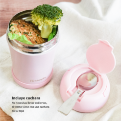 El nuevo termo de comida de 400 ml de Simplit es perfecto para mantener tus comidas frescas o calientes mientras estás en movimiento. Está hecho de acero inoxidable de doble pared y cuenta con un cierre hermético que garantiza la seguridad y la frescura de tus alimentos. Además, viene con una cuchara que se almacena en la tapa, para que siempre esté a mano cuando necesites comer. También cuenta con una base antideslizante que proporciona estabilidad y evita derrames accidentales. Con este termo, podrás disfrutar de tus comidas favoritas en cualquier lugar y en cualquier momento.