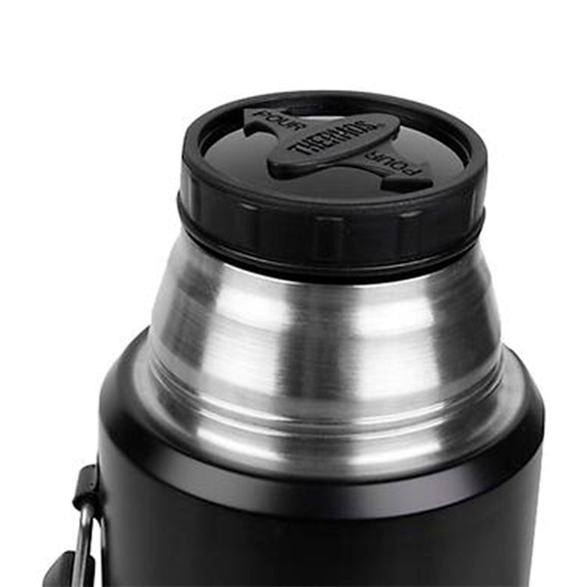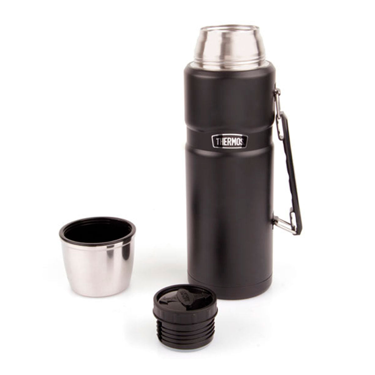 Esta botella de acero inoxidable King de 1.2lt es perfecta para llevar para acampar en familia y entusiastas del aire libre. Su construcción de acero inoxidable de doble pared y la tecnología de aislamiento al vacío Thermos mantienen sus bebidas favoritas calientes o frías hasta por 24 horas, lo que lo hace ideal para un viaje por la naturaleza durante la noche o el fin de semana. Imagínese despertar para ver el amanecer y no tener que encender fuego para tomar una taza de café caliente. La práctica taza para servir sirve también como tapa. La función de tapón giratorio y vertido significa un vertido fácil y un sello hermético para ayudar a prevenir fugas (cuando se ensambla correctamente). Utilice el asa de transporte integrada según lo previsto o cuelgue cómodamente la botella de bebida aislada de su mochila.
