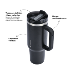¡Descubre la versatilidad y estilo con nuestro Tumbler de 1180 ml! Ideal para el café en la oficina, las emocionantes aventuras de fin de semana o las largas sesiones de estudio, este tumbler se adapta a tu vida activa con elegancia y practicidad. Su diseño colorido y atractivo no solo añade un toque de alegría a tu día, sino que también es perfecto para llevarlo a todas partes. Mantén tus bebidas favoritas frías o calientes durante mucho tiempo, asegurando que cada sorbo sea tan fresco como el primero. Con nuestro Tumbler de 1180 ml, la comodidad y el estilo se fusionan para acompañarte en cada momento de tu vida diaria. ¡Haz de cada bebida una experiencia memorable con este tumbler excepcional!