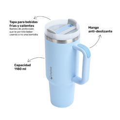 ¡Descubre la versatilidad y estilo con nuestro Tumbler de 1180 ml! Ideal para el café en la oficina, las emocionantes aventuras de fin de semana o las largas sesiones de estudio, este tumbler se adapta a tu vida activa con elegancia y practicidad. Su diseño colorido y atractivo no solo añade un toque de alegría a tu día, sino que también es perfecto para llevarlo a todas partes. Mantén tus bebidas favoritas frías o calientes durante mucho tiempo, asegurando que cada sorbo sea tan fresco como el primero. Con nuestro Tumbler de 1180 ml, la comodidad y el estilo se fusionan para acompañarte en cada momento de tu vida diaria. ¡Haz de cada bebida una experiencia memorable con este tumbler excepcional!