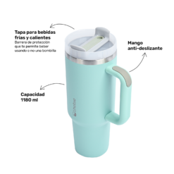 ¡Descubre la versatilidad y estilo con nuestro Tumbler de 1180 ml! Ideal para el café en la oficina, las emocionantes aventuras de fin de semana o las largas sesiones de estudio, este tumbler se adapta a tu vida activa con elegancia y practicidad. Su diseño colorido y atractivo no solo añade un toque de alegría a tu día, sino que también es perfecto para llevarlo a todas partes. Mantén tus bebidas favoritas frías o calientes durante mucho tiempo, asegurando que cada sorbo sea tan fresco como el primero. Con nuestro Tumbler de 1180 ml, la comodidad y el estilo se fusionan para acompañarte en cada momento de tu vida diaria. ¡Haz de cada bebida una experiencia memorable con este tumbler excepcional!